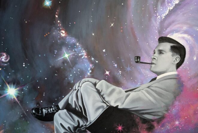 Godden’s paintings are defined by a signature combination of black-and-white subject matter punctuated by hyper-vivid colour. She uses digital collage as a foundation, reimagining and remixing nostalgic imagery into distinct conceptual works. These designs serve as a reference only, which she then freehand paints on canvas. Her artworks create a sense of transformation, nostalgia, and wonder, reframing familiar scenes through a surreal lens that invites emotional and narrative depth. The Art of Surreal Life encapsulates the conceptual language of her practice.