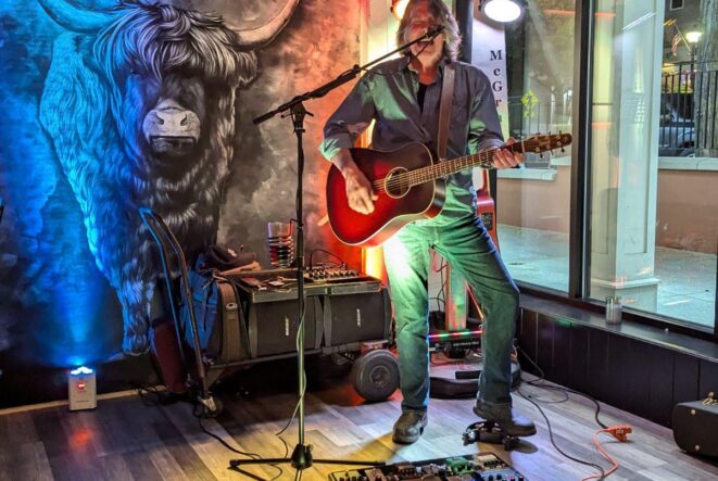 Dave plays a variety of classic rock, country and blues, giving them his own spin with live looping and foot percussion. He is a recording and performing artist covering hundreds of cover songs ranging from country to blues, rock and oldies in addition to a catalogue of originals.