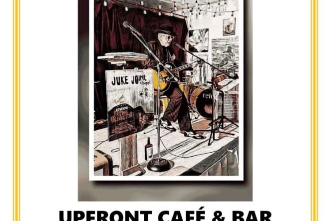 No official house band – UpFront Cafe provides the P/A system, 2 microphones, an electric baby grand piano, and a set of drums. Bring your own guitar, amp if needed, snare, or instrument.