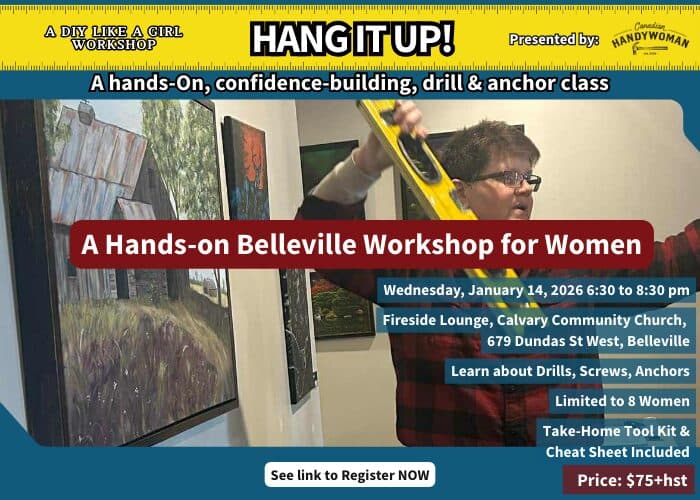 Hang It Up Belleville is a hands-on workshop designed to remove the fear and guesswork from hanging pictures and wall décor. You’ll learn when to use a screwdriver versus a drill, how to choose the right anchor, and how to hang items securely without damaging your walls. This session is practical, supportive, and focused on building real confidence through hands-on practice. You’ll Learn: * When to use a screwdriver vs a drill * How to choose the right anchor for different wall types and weights * How to measure, mark, and level correctly * How to drive screws without stripping or cracking drywall * How to hang pictures and décor securely the first time You’ll Receive: Hands-on experience using a drill and anchors, and the confidence to hang items securely at home without second-guessing or making extra holes. This is for: Women who want their home to feel finished but don’t want the frustration, mess, or fear of “doing it wrong. Women who want to feel more confident using basic tools Homeowners or renters tired of crooked frames and wall damage. Anyone who’s avoided hanging things because they’re unsure or nervous Beginners welcome — no experience required By the end: You’ll be able to confidently hang pictures and wall décor using the right tool and anchor — and trust yourself doing it. AND Receive a wall anchor starter kit valued at over $25 Be sure to save your spot. Hang it right the first time. Limited to 8 spots Join Us, Build your confidence – hands on Hang It Up is a hands-on DIY workshop for women focused on using drills and anchors with confidence to hang pictures and wall décor properly.