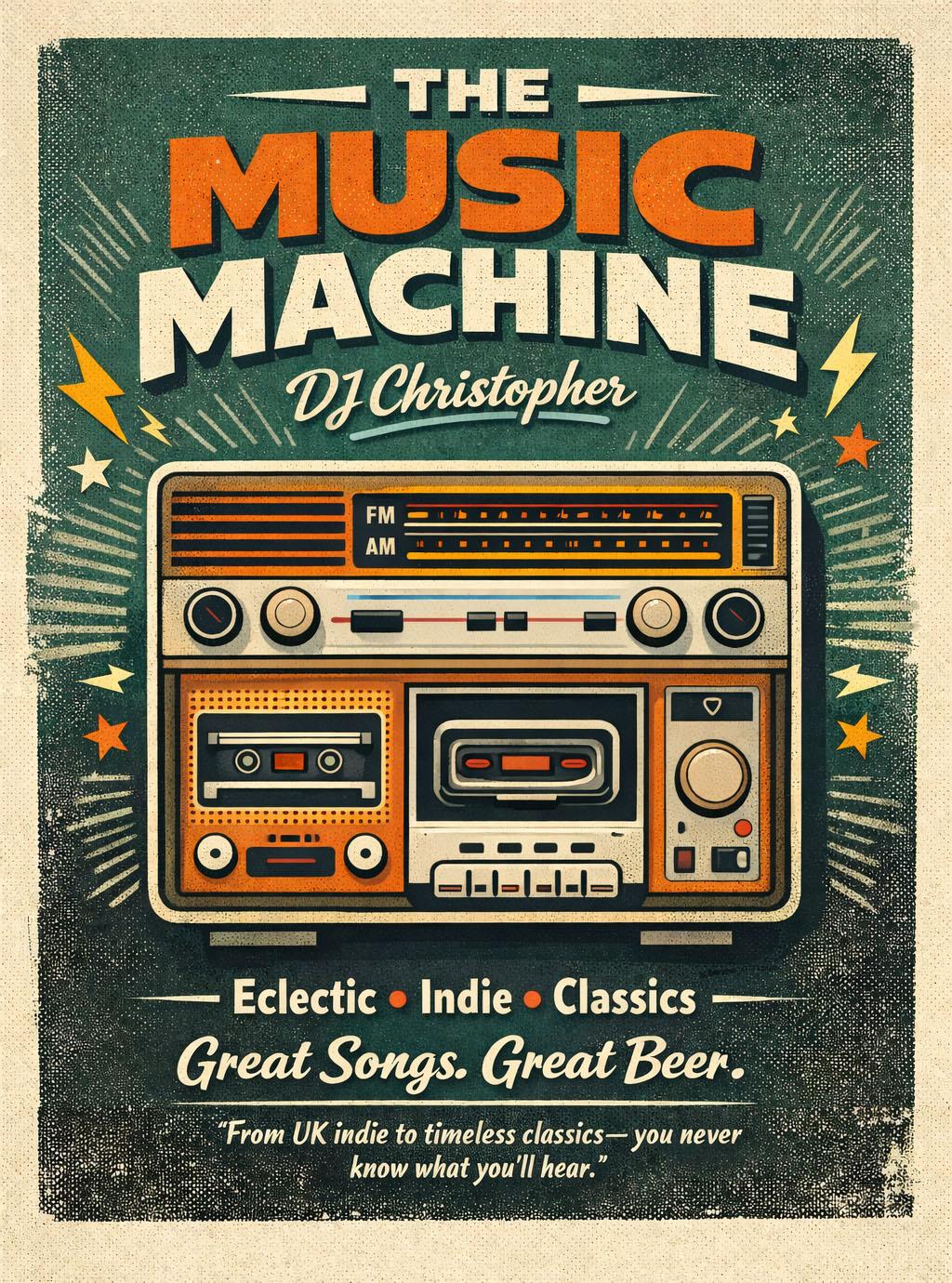 Born and raised in Toronto, DJ Christopher developed a lifelong love of music through late-night radio and the iconic CFNY 102.1, The Spirit of Radio. His early years were spent immersed in the Queen Street West club scene, shaping a deep and eclectic musical taste. Now based in The County since 2020, The Music Machine is a journey through the sounds he’s collected over a lifetime—blending brand-new indie discoveries with timeless classics. Expect anything from emerging UK indie tracks to vintage gems by Stevie Wonder, The Rolling Stones, or The Stone Roses, with the occasional surprise from Massive Attack or New Order. No two sets are ever the same. Great songs bring people together—and they pair perfectly with great beer. Join us as we launch and explore The Music Machine. |