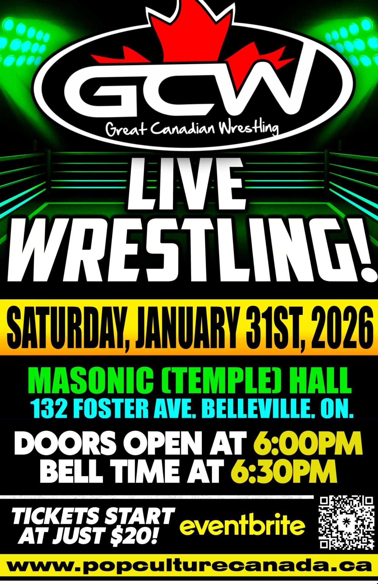 LIVE WRESTLING COMES TO YOUR TOWN! GCW Live Wrestling charity event! When: JANUARY 31st 2026 Where: Masonic (Temple) Hall Tickets: General Admission Kids 12 and under: $20 General Admission Adult: $25 Front Row reserved seats: $35 – Online Only *** VIP TICKETS *** available as General Admission or Front Row ticket included : includes a GCW GIFT BAG w 2 GCW pins , a GCW replica toy championship belt , and so much more ! .. only an extra $25 for a bag full of swag !! FOOD DONATIONS : Please bring non-perishable food items for your local community food bank and get entered to win some fun prizes. One raffle ticket will be given for each item. 《To a maximum of 10 tickets》