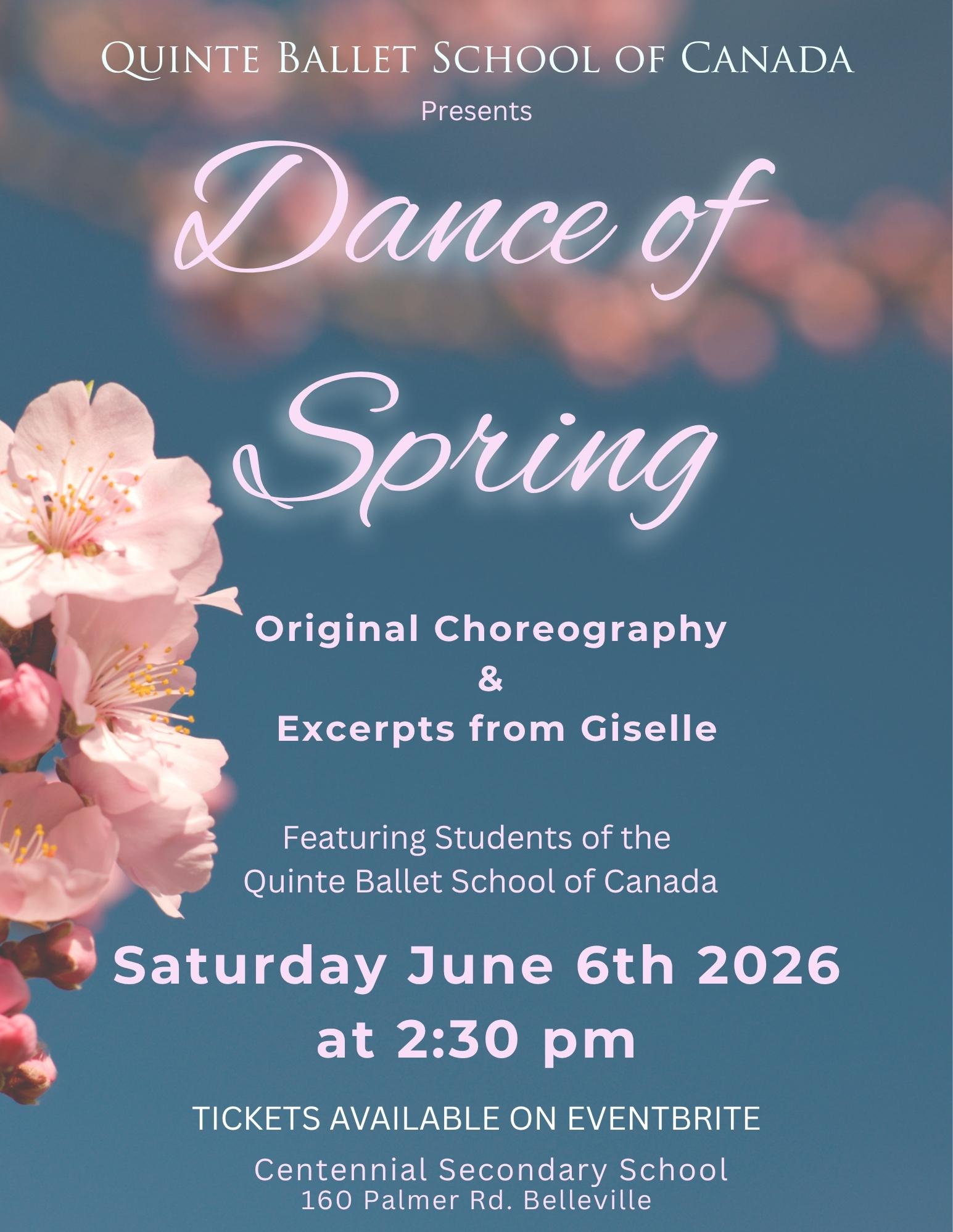 We are looking forward to welcoming everyone to our annual Dance of Spring performance this June. The performance will take place at Centennial Secondary School on Saturday, June 6 at 2:30 PM.