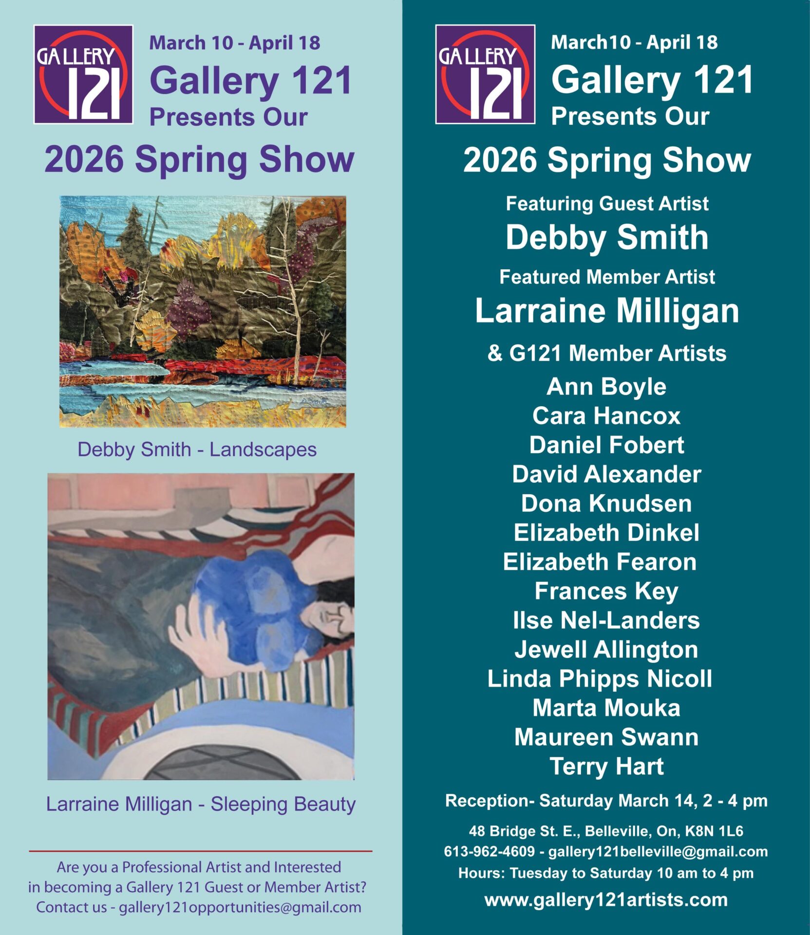 PAST AND PRESENT GALLERY 121 35th Anniversary Show February 10th – March 7th About Gallery 121 Gallery 121 has spent thirty-five years presenting exceptional creative and imaginative works to the public. As a Registered Co-operative, the gallery is committed to fostering a vibrant space for artists and artisans to share their talents. Anniversary Show Highlights This commemorative exhibition will showcase a dynamic blend of artwork from both former and current members. More than fourteen former artists will have their pieces displayed alongside the works of today’s talented members, creating an exciting fusion of past and present creativity. Join the Celebration Guests are invited to the reception on March 14th from 2 – 4 p.m. to enjoy delicious cake, a variety of beverages, and the camaraderie of fellow artists. Immerse yourself in the creative atmosphere and celebrate the rich history and promising future of Gallery 121.